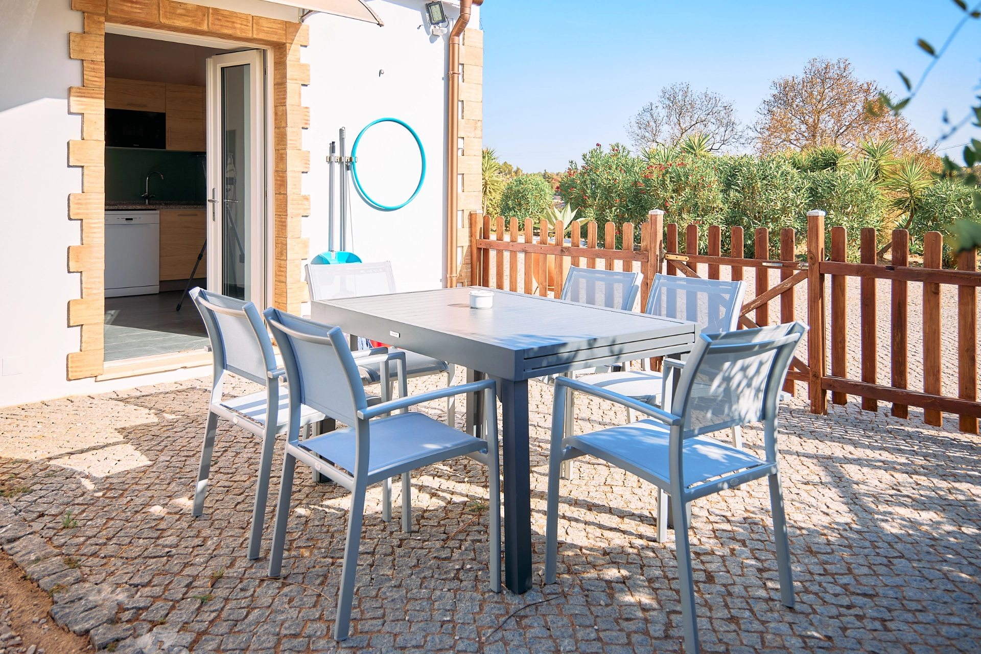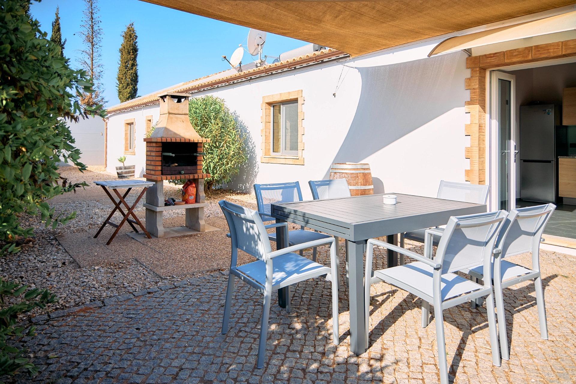 No exterior, os hóspedes podem aproveitar os churrascos ao pôr do sol, dar um mergulho na piscina privada ou simplesmente relaxar no deck solarengo e nas espreguiçadeiras, imersos na serenidade do campo. Ideal para famílias com crianças ou duas famílias/casais que procurem um refúgio tranquilo no Algarve.